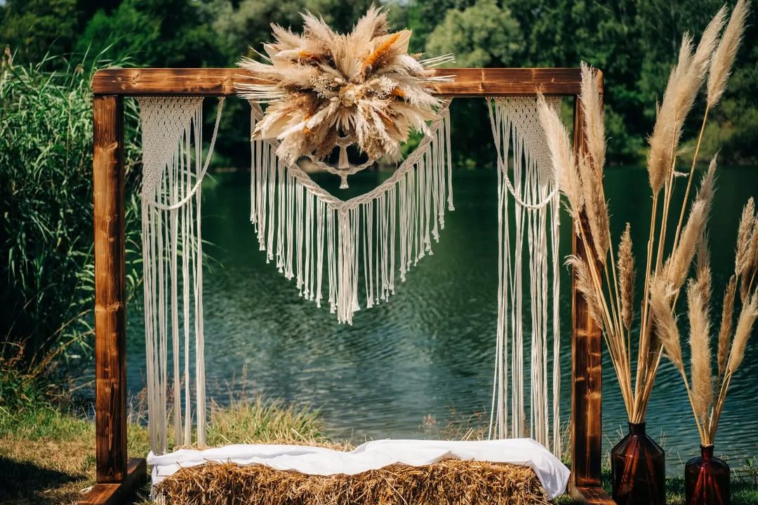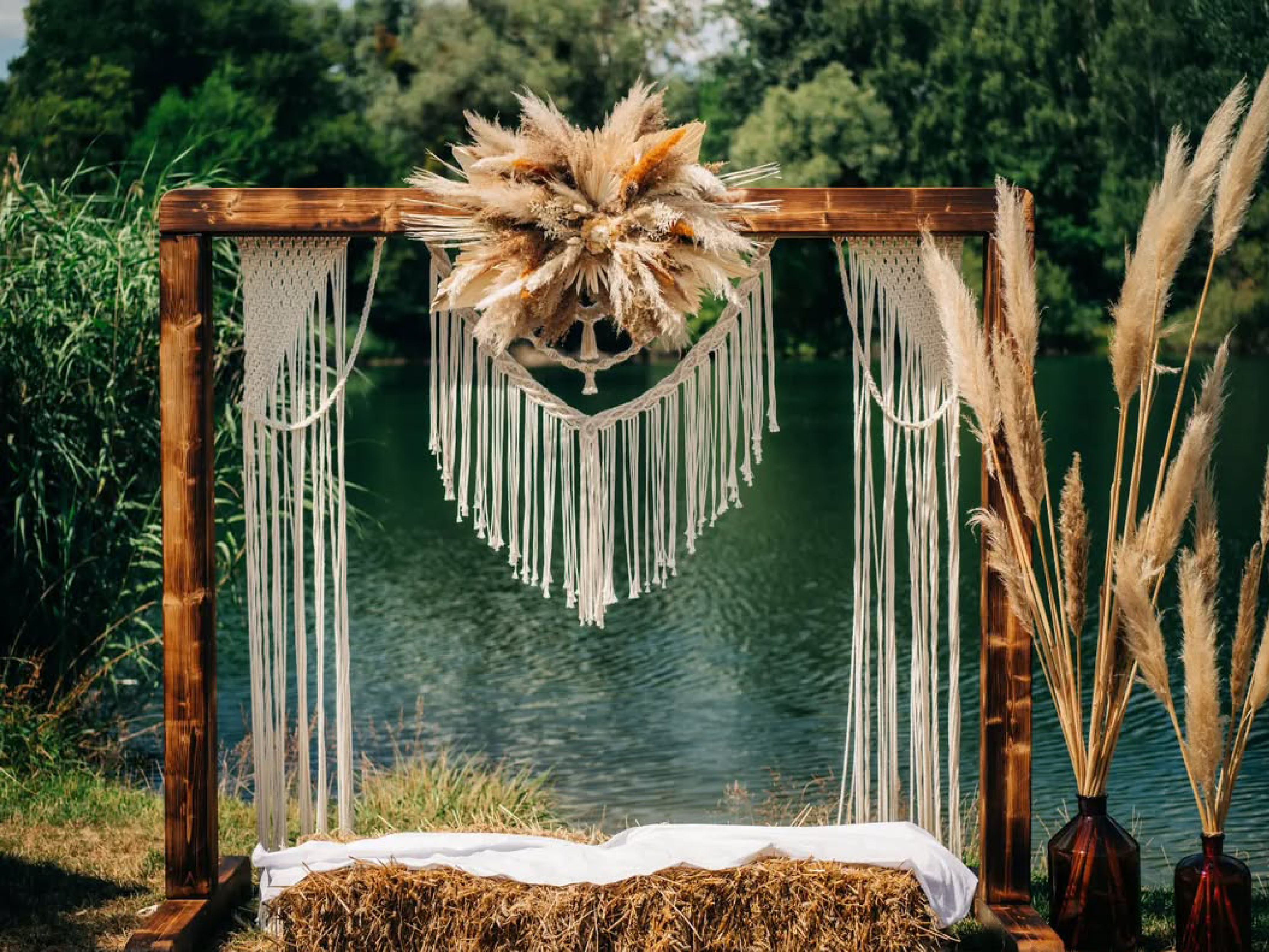 Rustikaler Traubogen mit/ohne Trockenblumenwolke und Makrameebehang oder Tücher